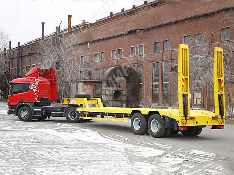 Трал низкорамный (полуприцеп-тяжеловоз) Hartung 9433-0000010 для транспортировки длинномерной строительной техники. Трал Hartung 9433-0000010 может осуществлять перевозку техники массой до 39 000 кг. Въезд техники на трал осуществляется по механическим трапам с пружинной системой.